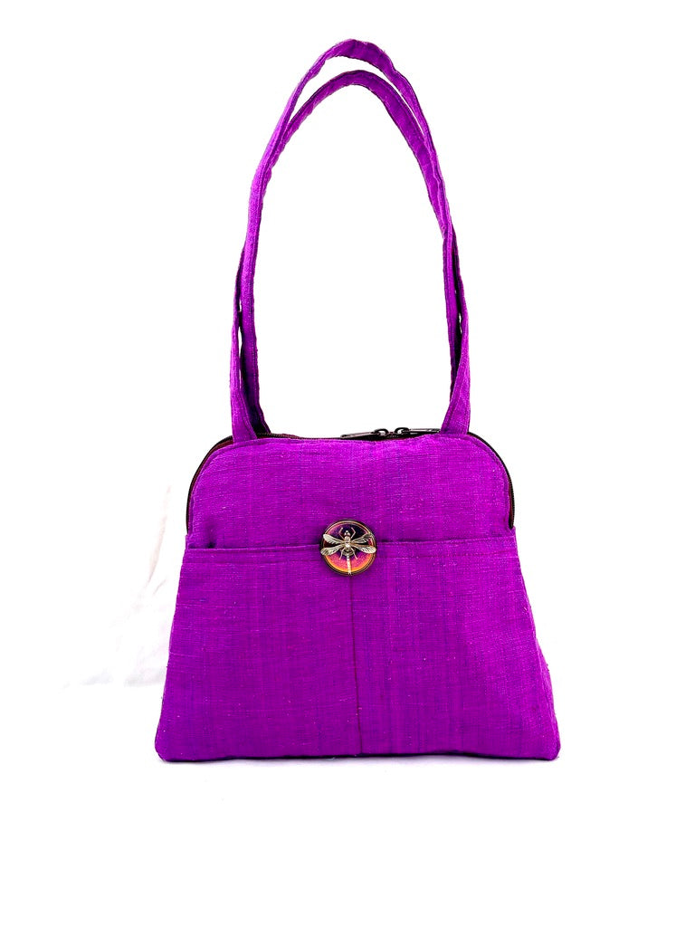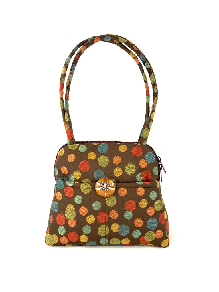Made with the same proportions as the charming Eve Bag, the Ultra (we pronounce it "Ool-tra") is a tapestry handbag sized for those of us who need a larger purse. With two exterior pockets to put the things you want to get to right away, handles that also fit over your shoulder and adorned with a beautiful coordinating button, this purse is a winner from first glance.
