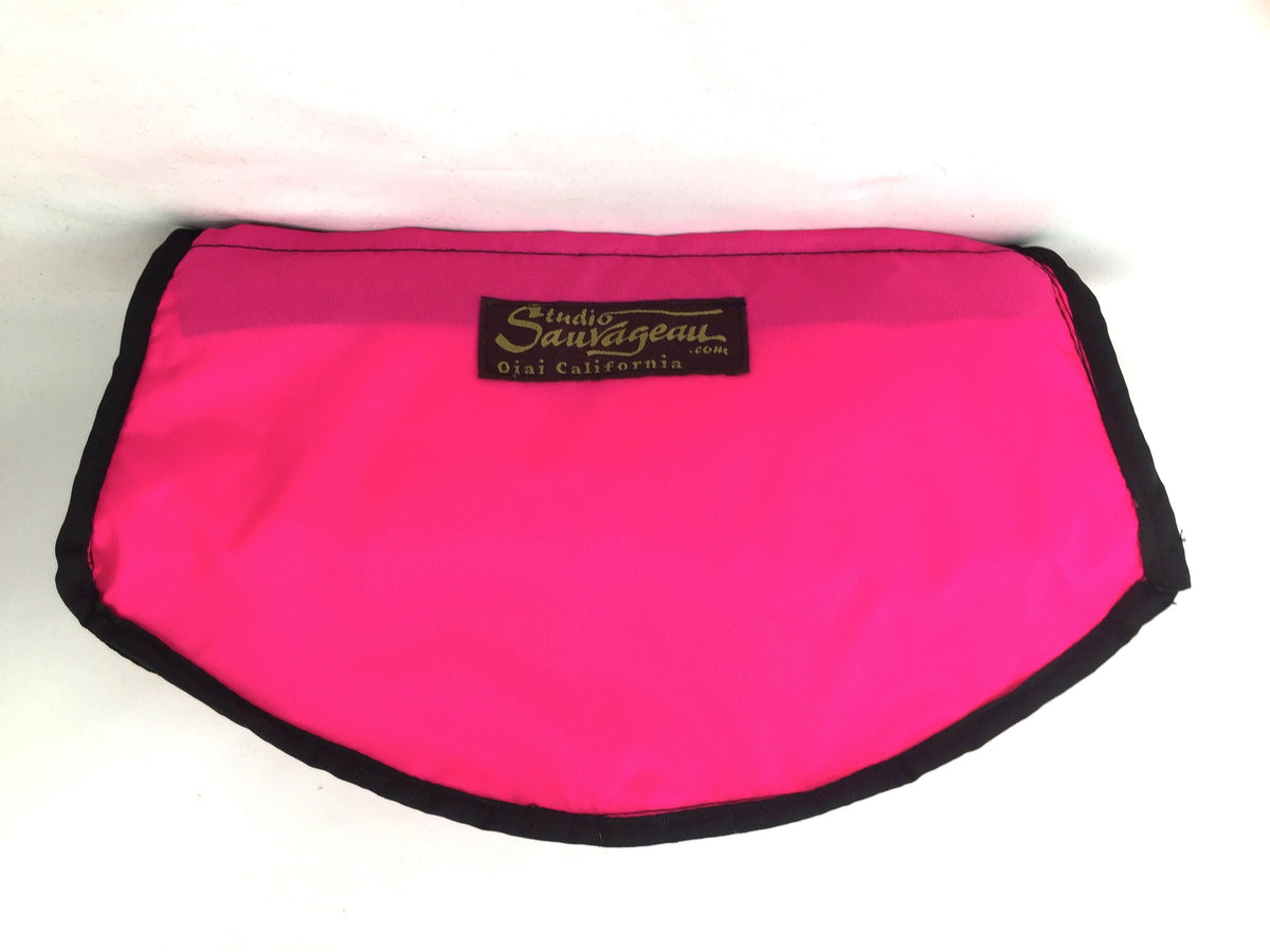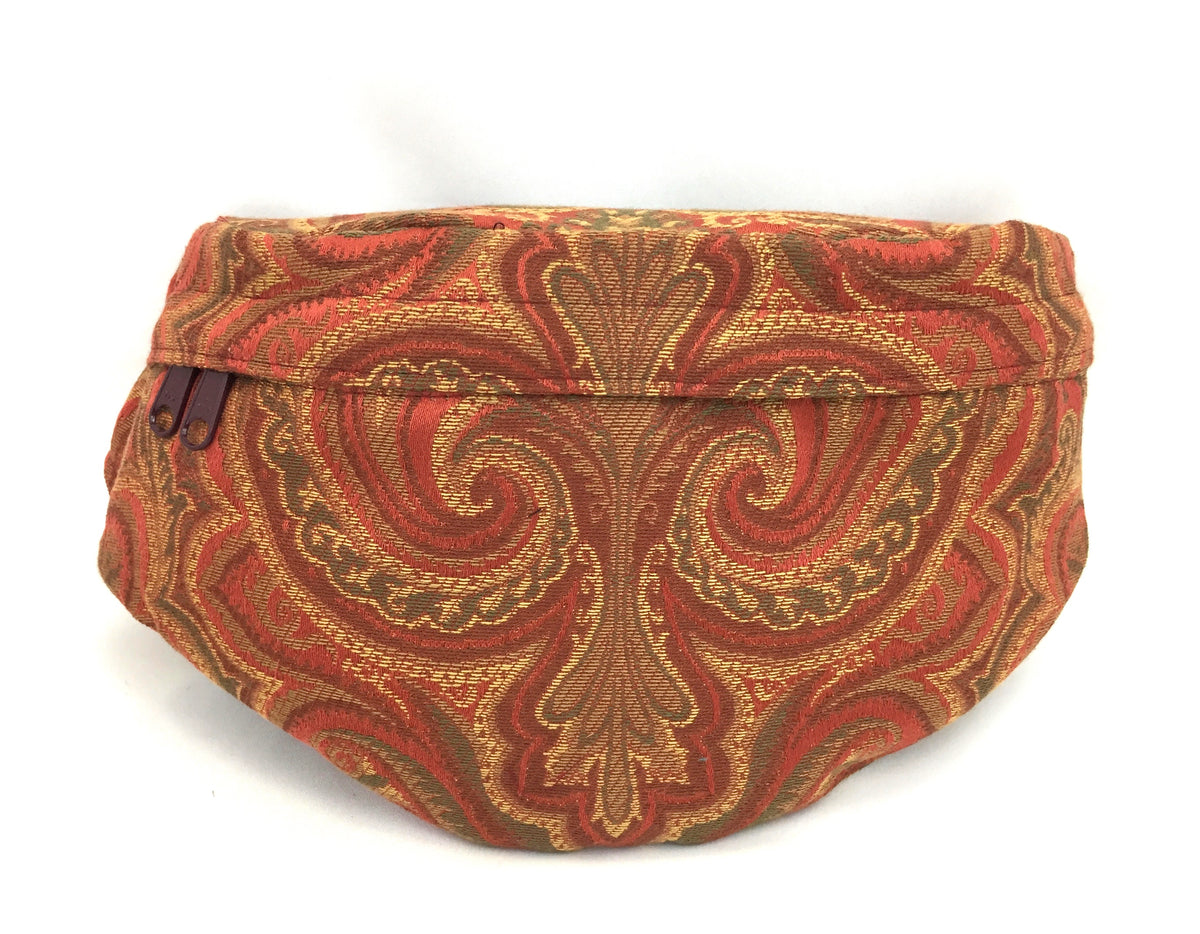 The Small Hip Bag has a covered zippered opening across the front and a large interior compartment. The back, which is against your body, has a secure zipper pocket for stashing your money or passport when traveling. There is a zippered pocket inside the bag, on the inside of the front. Fully lined with our durable, water-resistant lining fabric in a beautiful coordinating color.