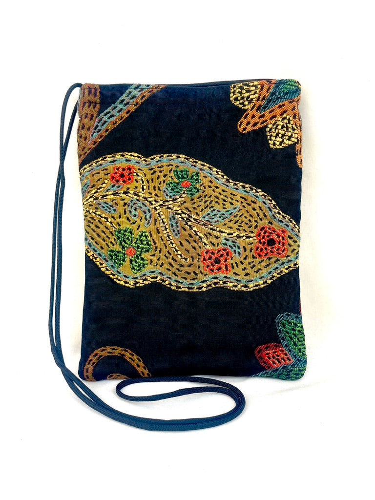 The Patch Purse is a petite vertical bag with sleek styling. Pieced with coordinating fabrics, or all one fabric, this small tapestry shoulder bag frames the beauty of the fabric in each of its sections A vertically-oriented rectangular bag with a zippered outer pocket and a zippered main compartment this bag is fully lined with our waterproof nylon lining fabric.