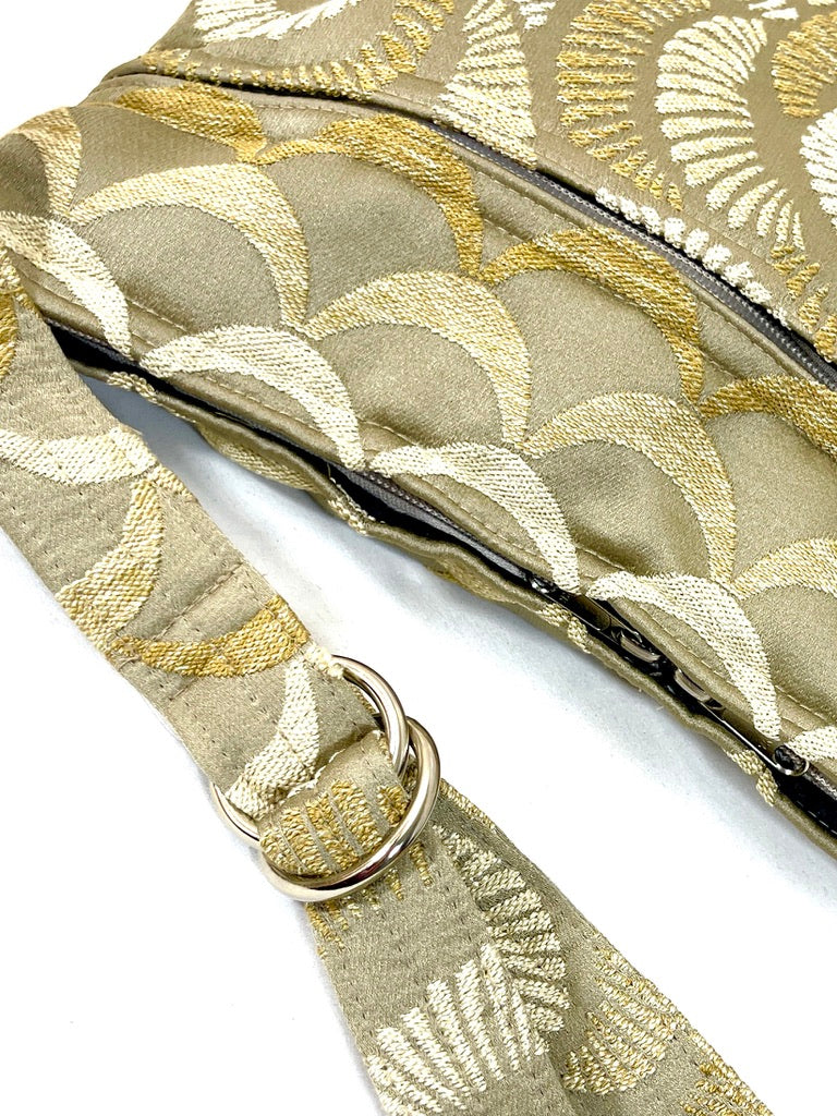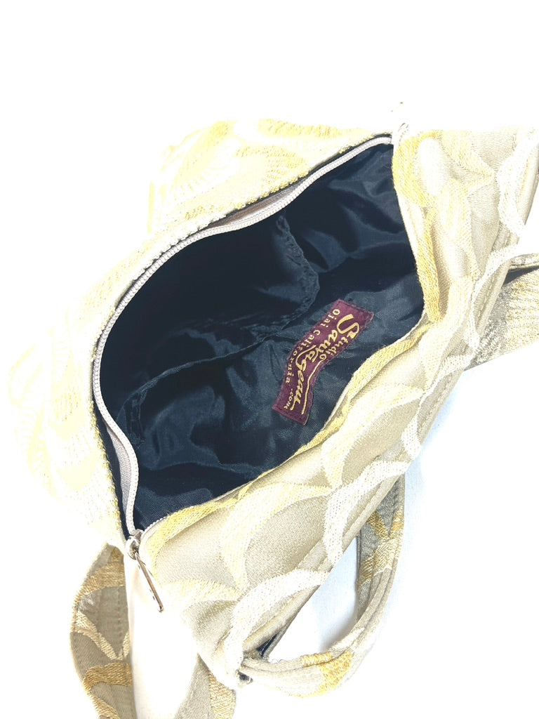 The combination of coordinating fabrics with a satin-finish background with scalloped chenille figures in ivory, gold and sand make this a distinctive one-of-a-kind Urban Portfolio. Lined in black.