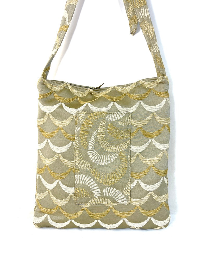 The second compartment is flat, zips at the top and will separate your tablet, laptop or papers from your purse contents. This compartment will also hold purse items, a small laptop or tablet. On the back is a pocket that will hold your cell phone. This bag has a one-inch wide fabric shoulder strap, covered in fabric and is adjustable with two metal rings. There is a phone pocket on the back for easy accessibility.