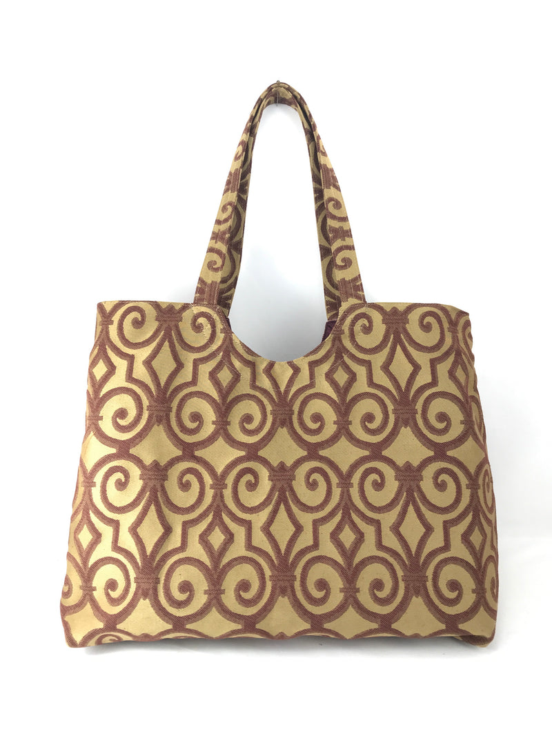 Magnum Tote in Bronze and Burgundy Scroll Jacquard