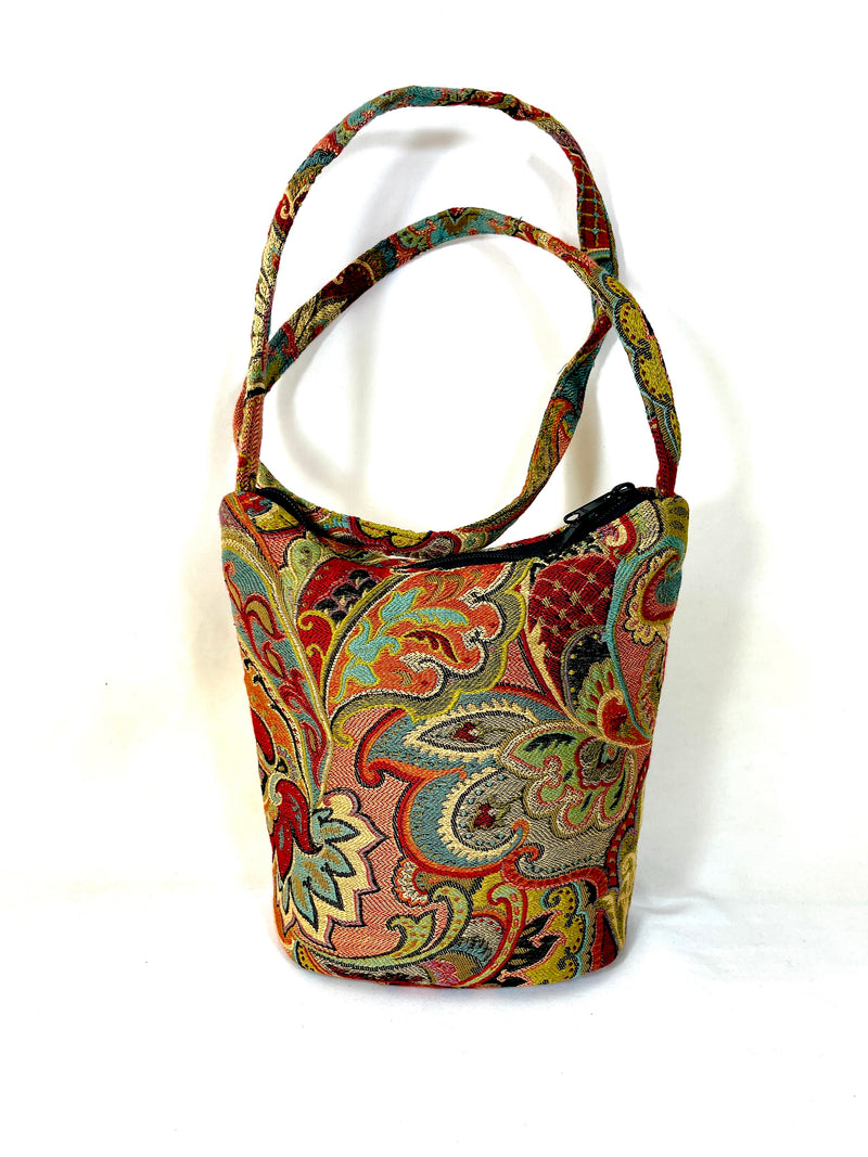 Bucket Purse in Botanical Arabesque Tapestry