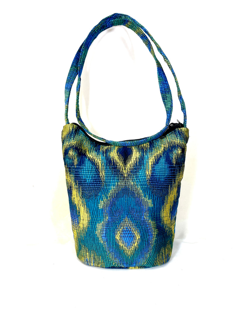 Bucket Purse in Blue Peacock Jacquard
