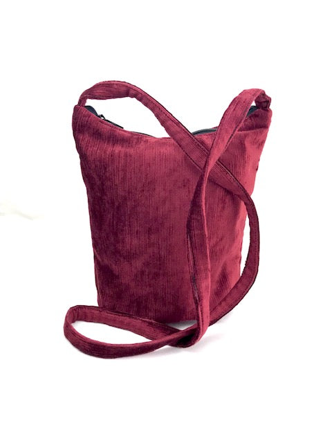 Bucket Purse In Burgundy Cotton Velvet Tapestry