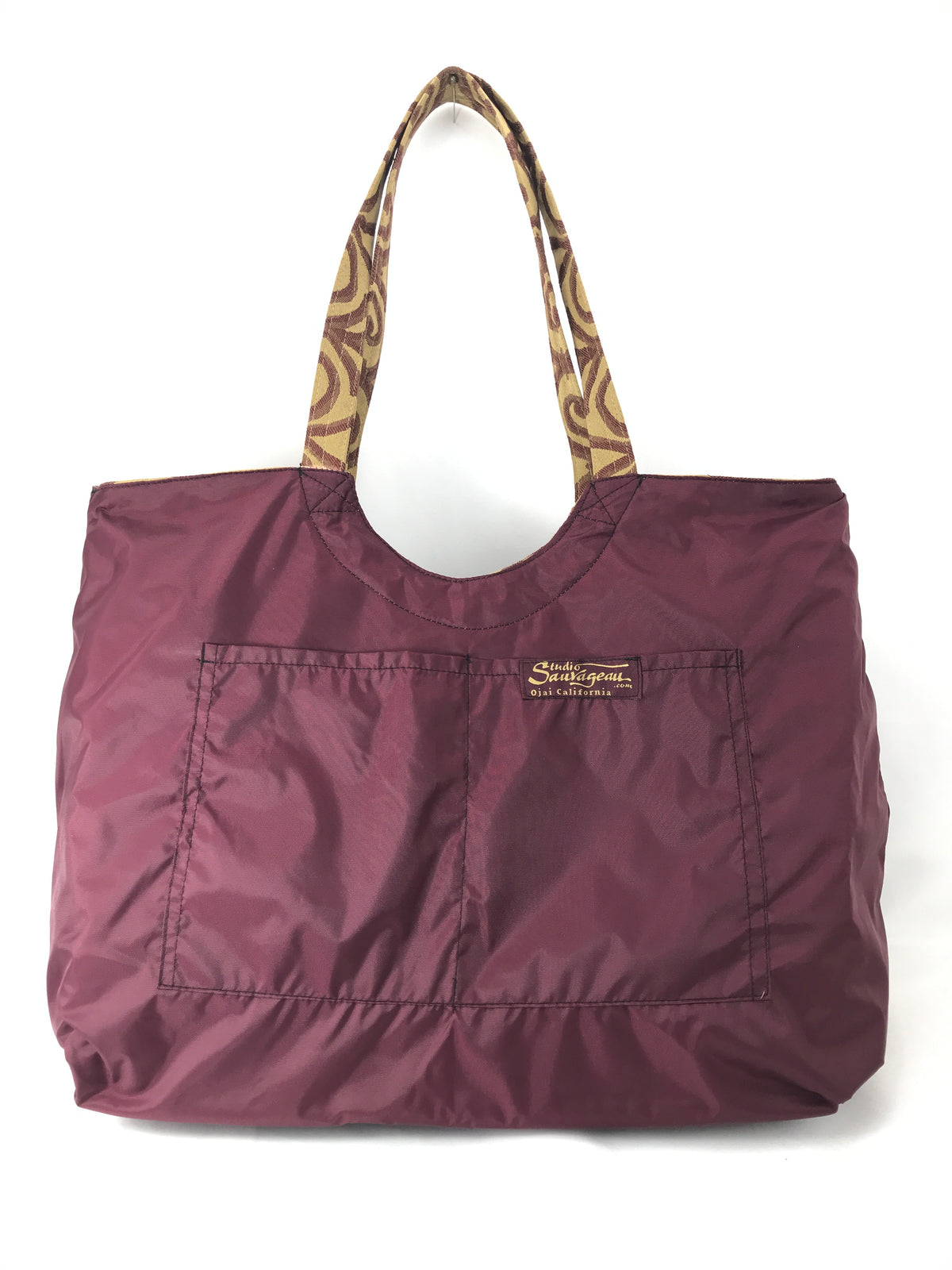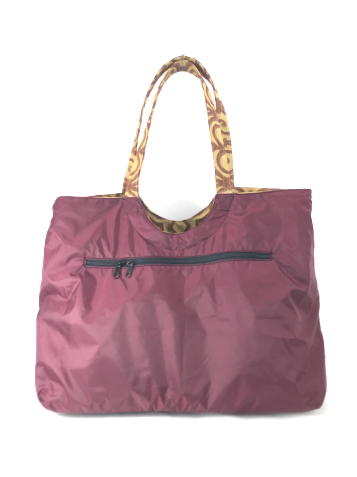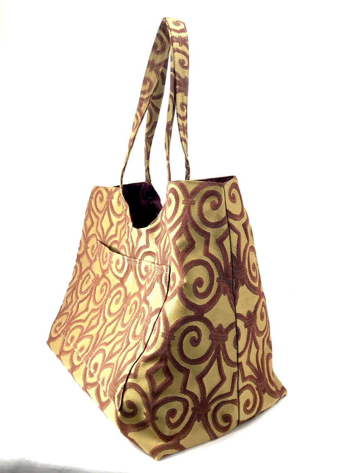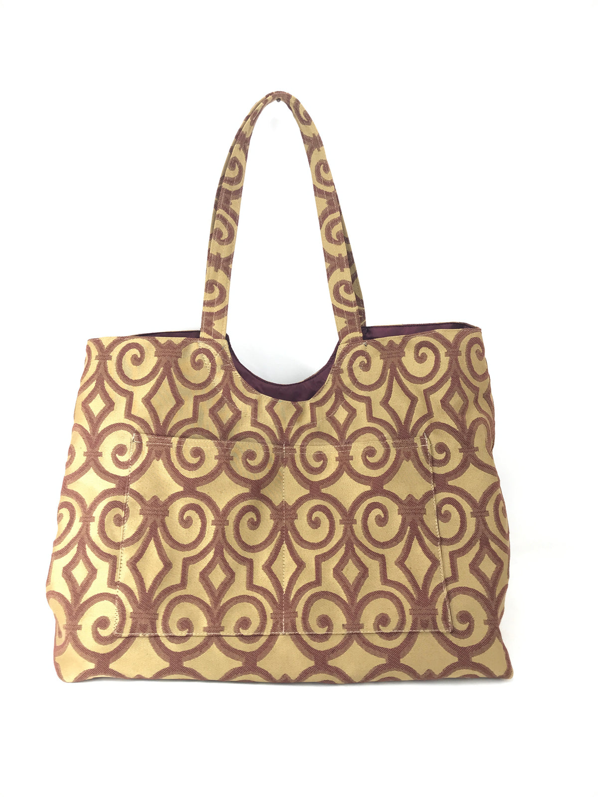 Magnum Tote in Bronze and Burgundy Scroll Jacquard
